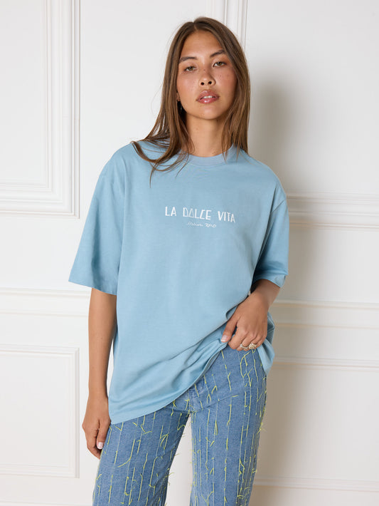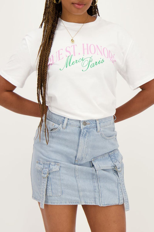 AanbiedingWit t-shirt met paarse 'Rue st. honoré'
