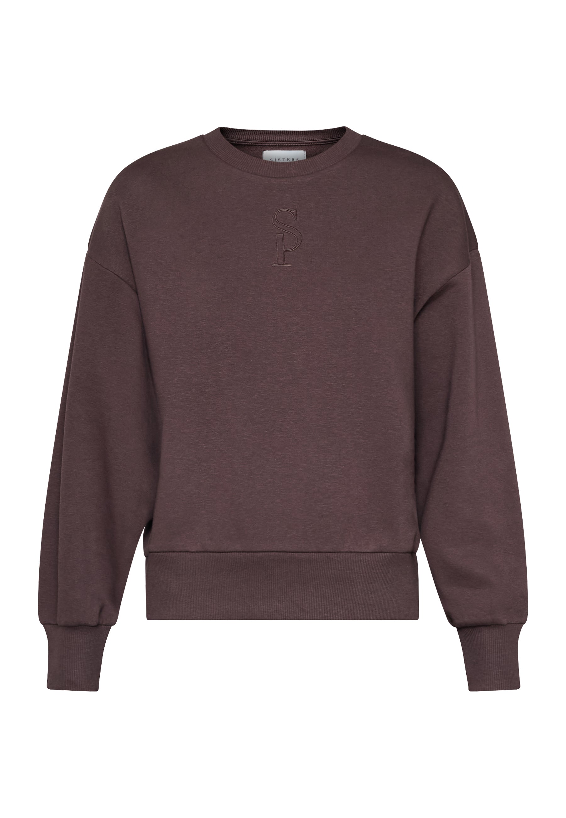 De Brown sweater van Sisterspoint heeft een wijde fit en afhangende schouders. Aan de voorkant net onder hals staat 'SP'.