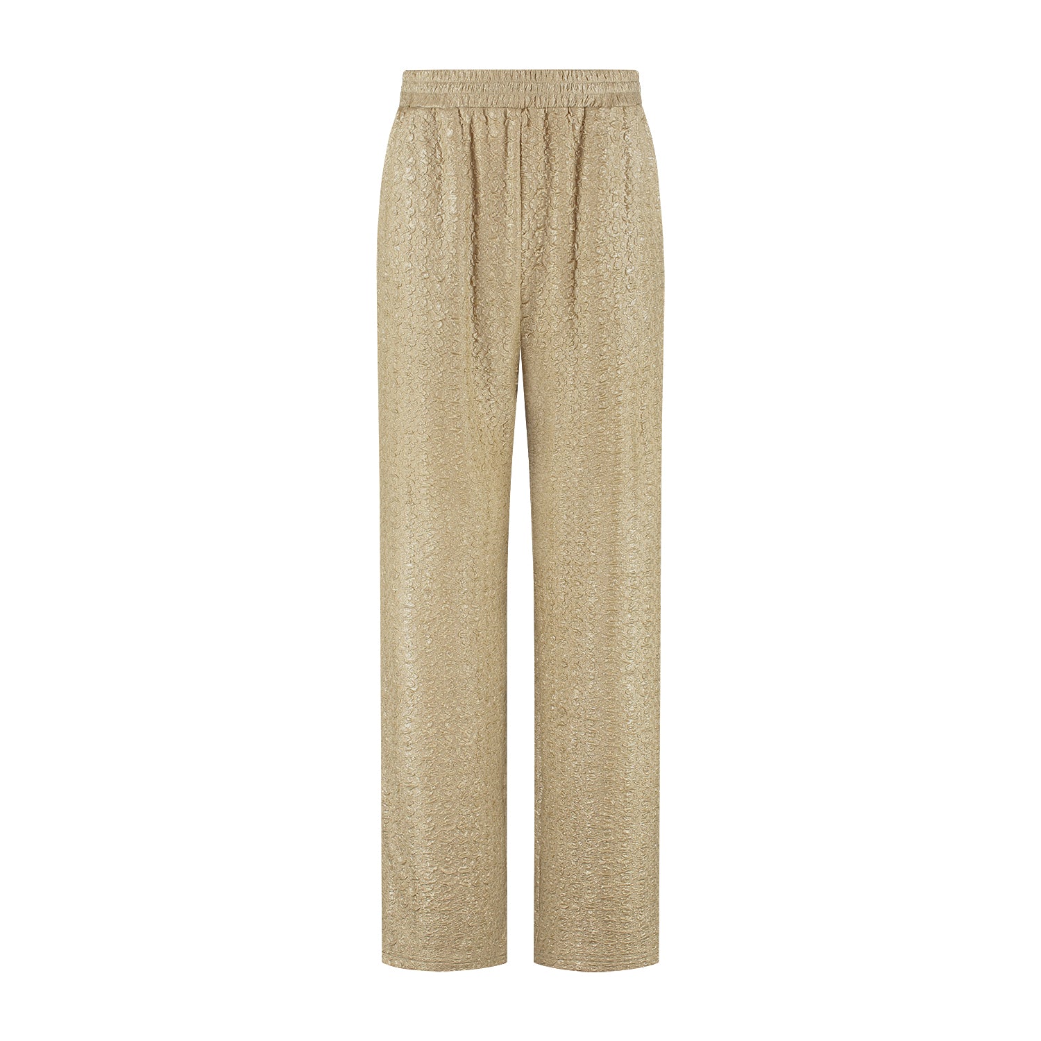 De Dally pants van Studio Amaya valt high waist, heeft zakken en een elastische tailleband. Draag samen met de 'Bliss top' ! De set is gemaakt van een zachte glinsterende stof.